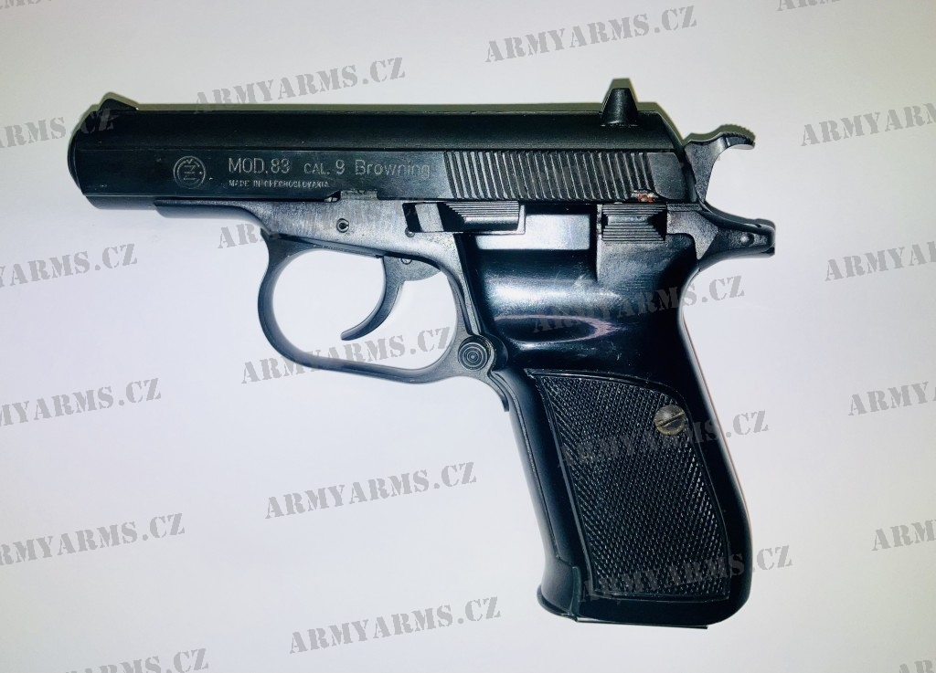 Pistole samonabíjecí ČZ 83, ráže 9 mm Brow., v perfektním stavu. Platná česká zkušebna 93. V ceně kožené pouzdro. K nabytí nutné nákupní povolení.